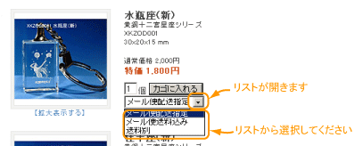 メール便指定をご希望の場合は、ドロップダウンリストから【メール便送料込み】を選択してください。